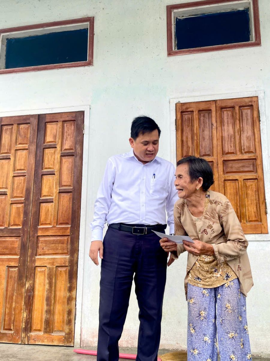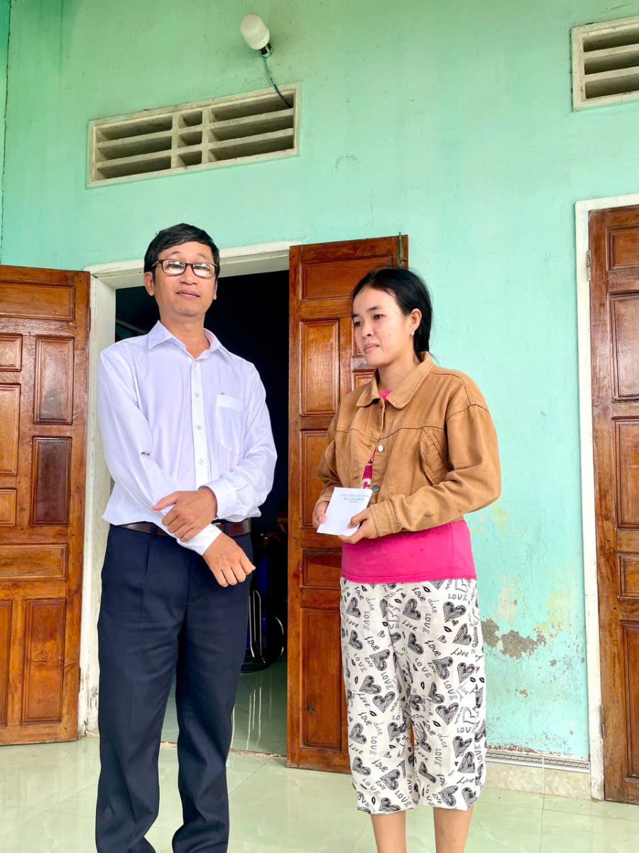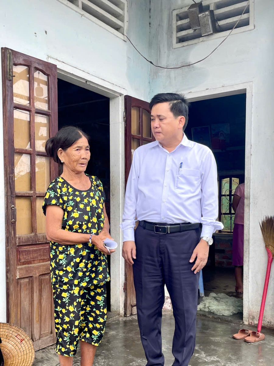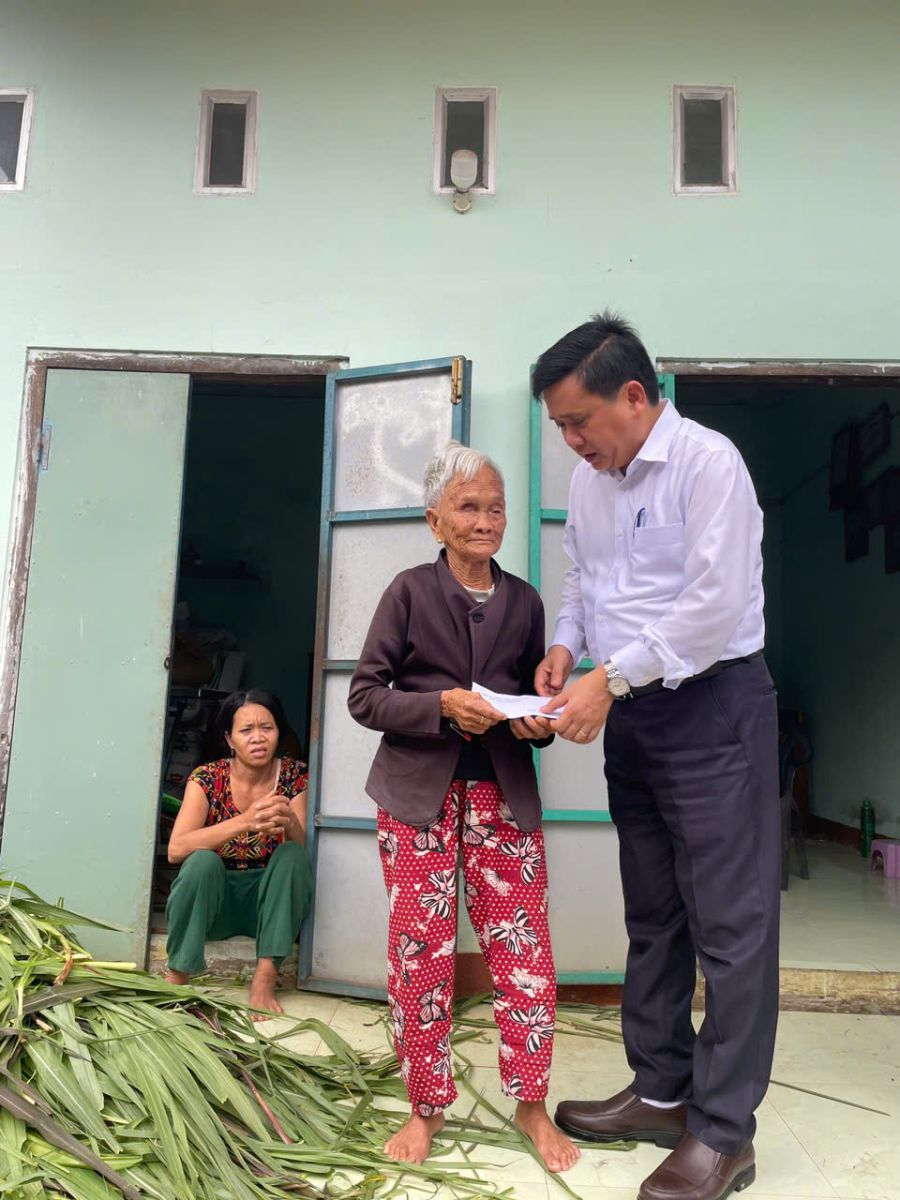 Đ/c: Đặng Thanh Hoàng – Phó Bí thư Thường trực Đảng ủy thăm hỏi trao quà cho gia đình bị ảnh hưởng do trận gió xoáy gây ra.